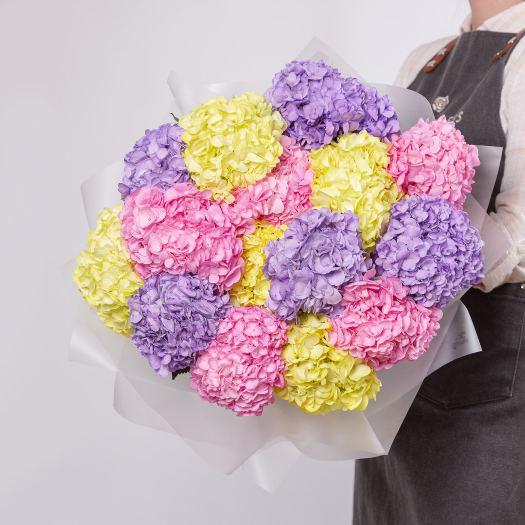 Гортензия желтая 5 шт, гортензия розовая 5 шт, гортензия сиреневая 5 шт, писташ.